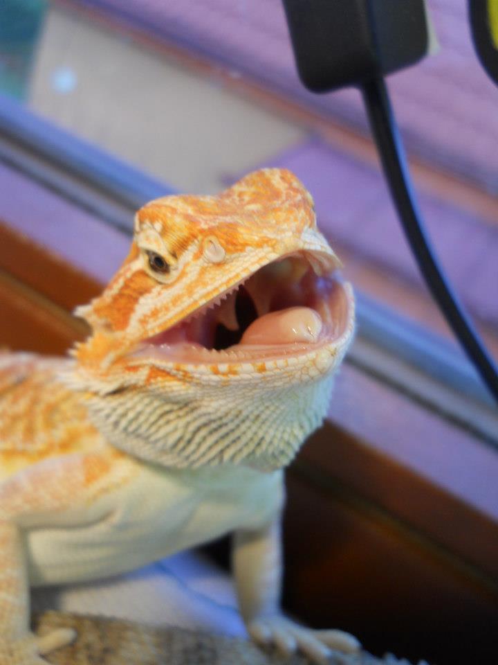 Tlama, nebo jestli chcete pusa agamy je opatřena několika ostrými zoubky. Jazyk není rozeklaný, na špičce jazyku je lepivá část (slouží k ,,polapení´´ potravy). Když má agama otevřenou tlamu/pusu, tak se většinou chladí (větrá). Kousnutí dospělé agamy může být velmi bolestivé, může prokousnou i nehet. Agamy jsou flegmatická zvířata, samotné kousnutí bývá součástí nehody např. při krmení z ruky se agama netrefí do potravy, nebo si prst splete s potravou.